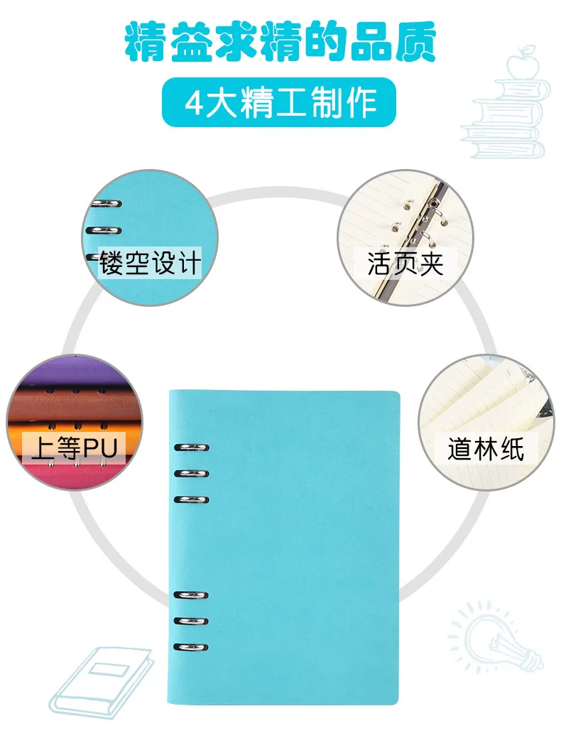 Notizbuch A5, weiches Leder, herausnehmbarer Einband