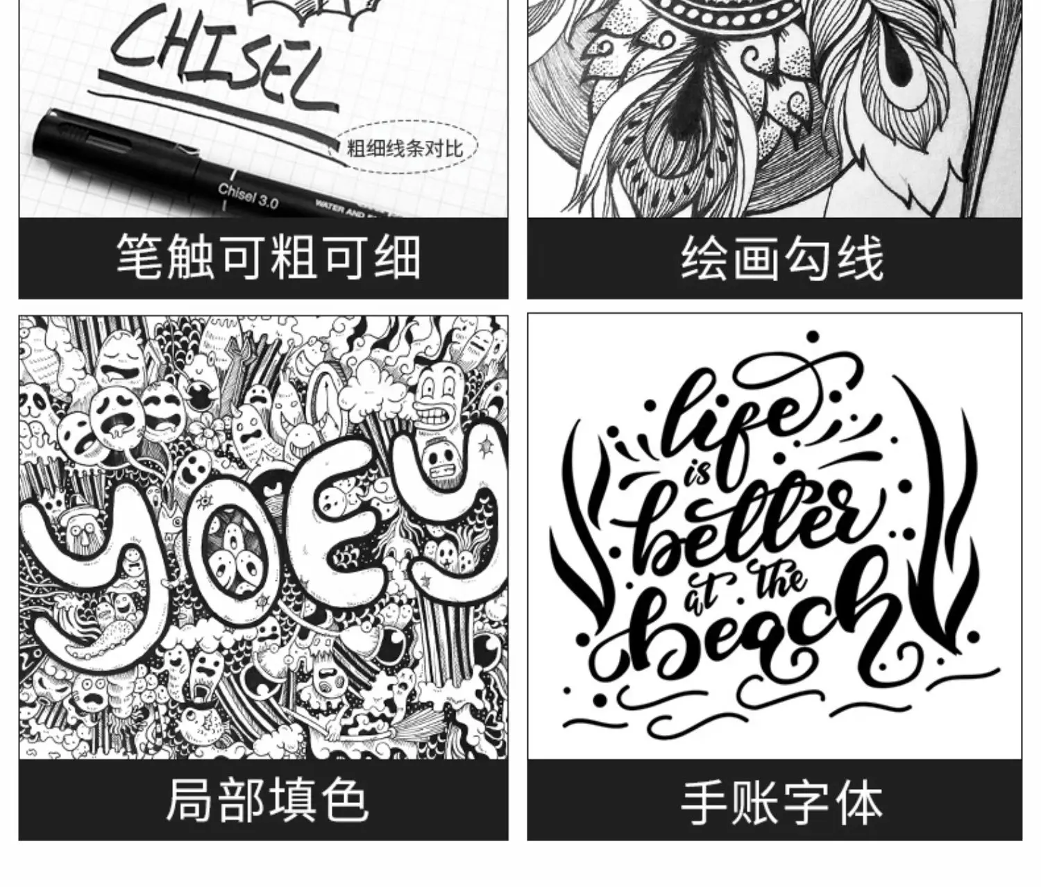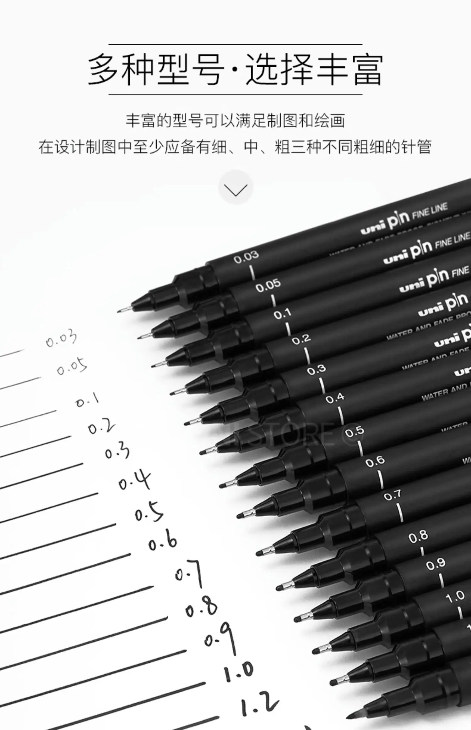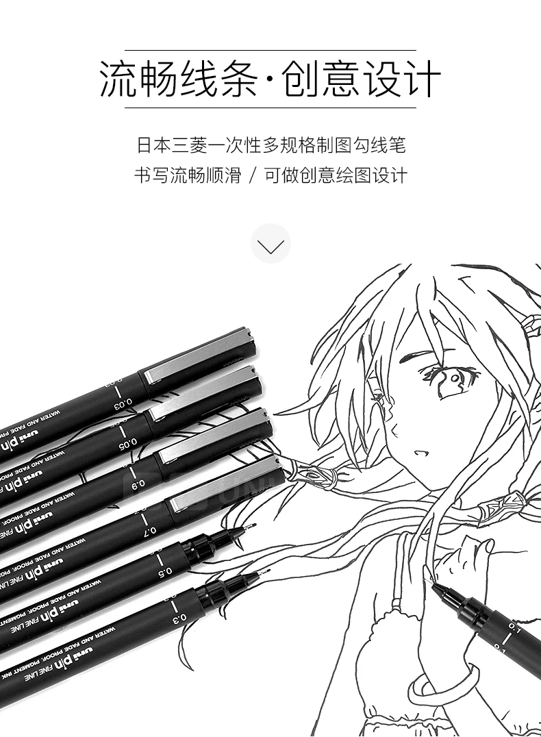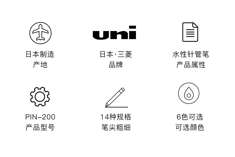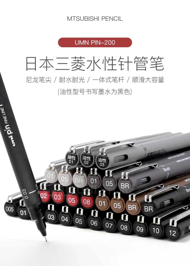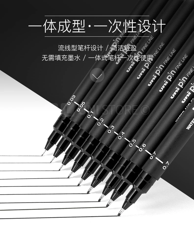UNI PIN Gelstift, Fineliner, Zeichenstift-200, wasserfest, 0,25–0,94 mm